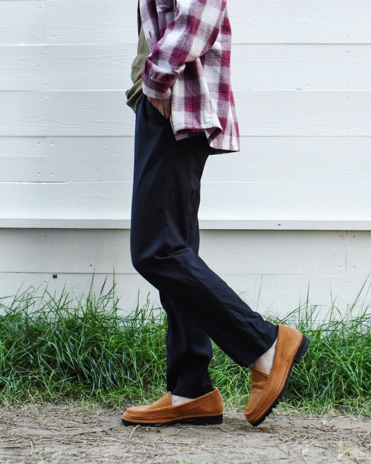 生地の暑さ的にもオールシーズン着用頂けますし、革靴からコンバースのようなスニーカーまでドレスからカジュアルな物まで合わせやすいのも魅力です。