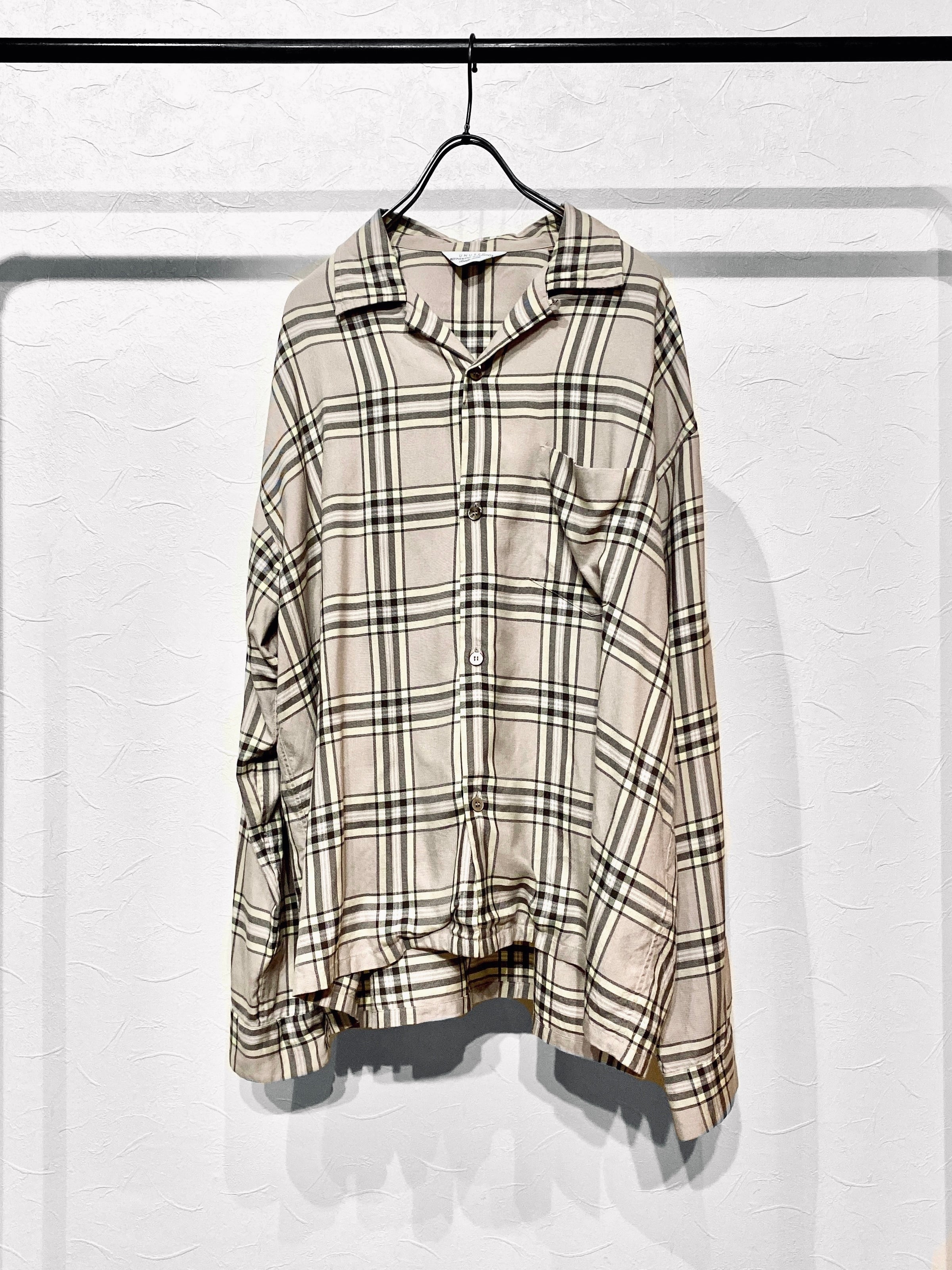 やや肉厚でとろみのあるレーヨン素材を使用したオープンカラーのデザインのチェックシャツでカラーはグレーを基調とした優しい色合い