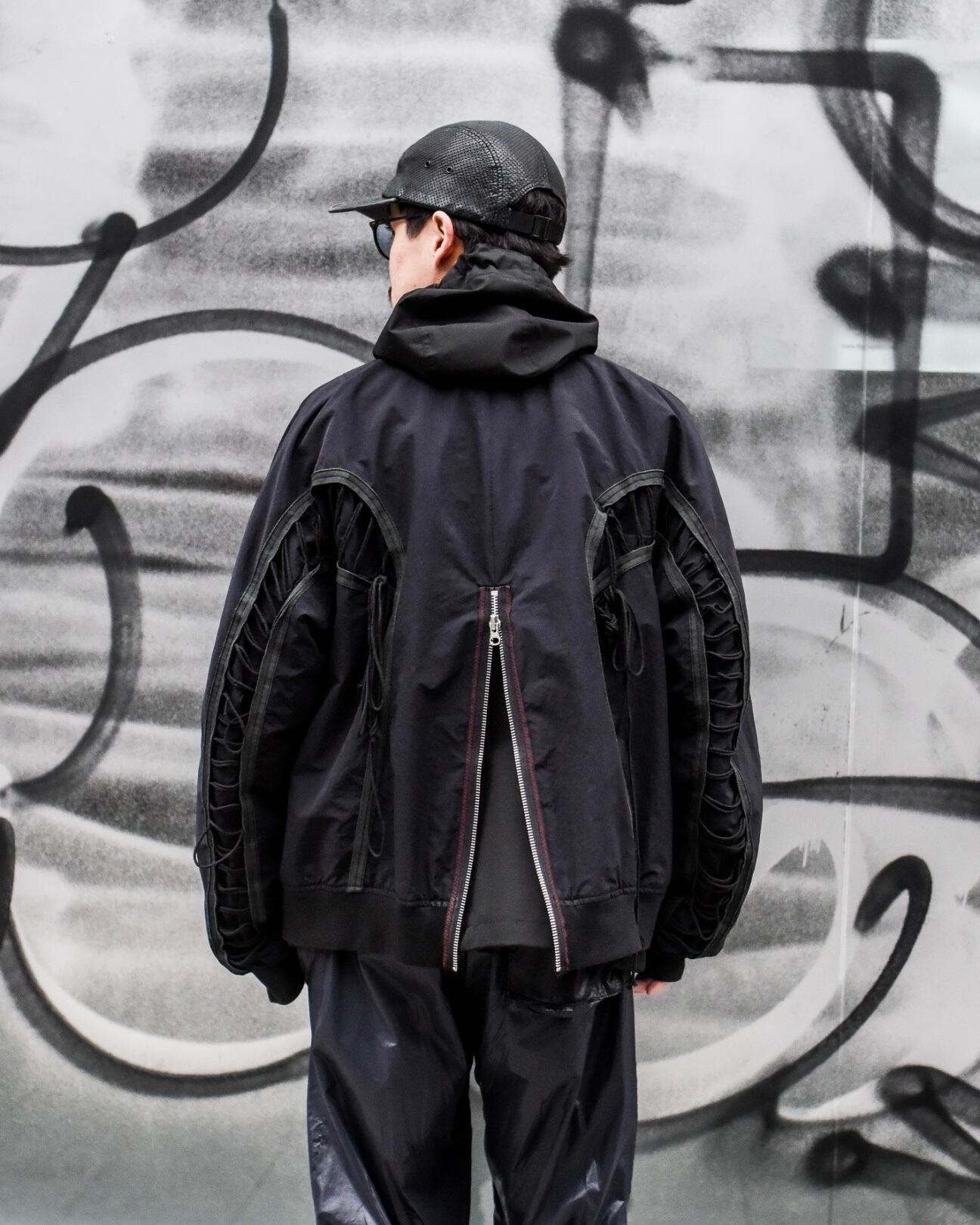ボンバージャケットをベースにフロントバック共に様々なディテールを盛り込んだデザインが特徴的なアイテム