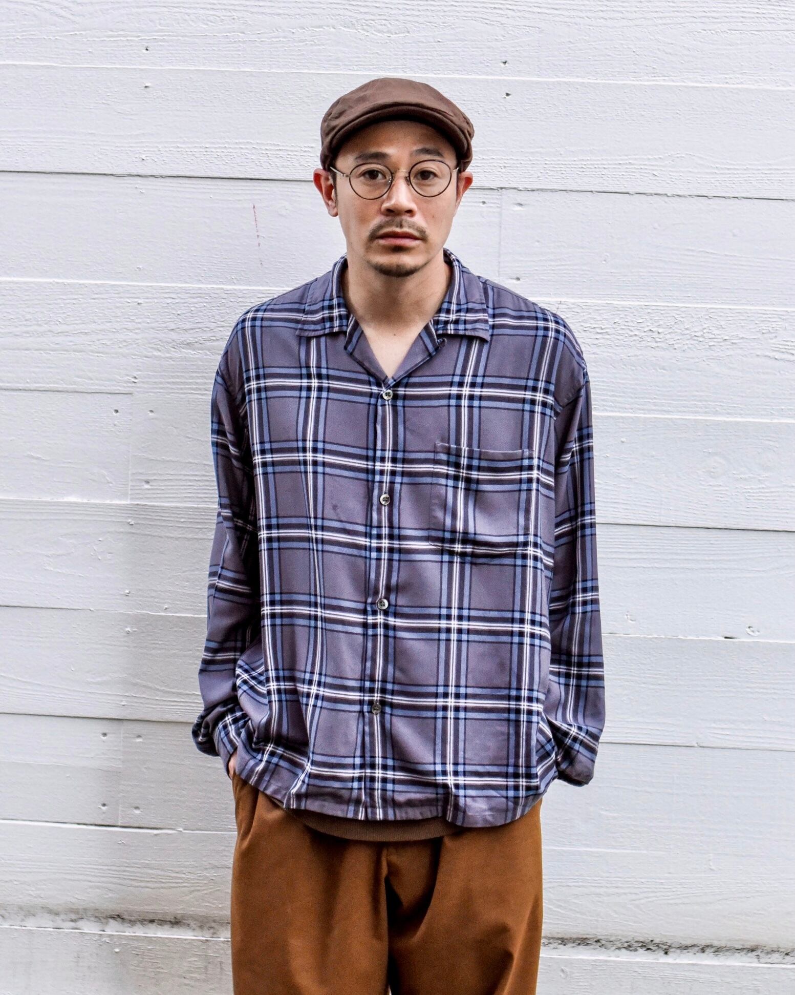 UNUSED - Rayon Open Collar Check Shirt (size-2) ¥20000+tax