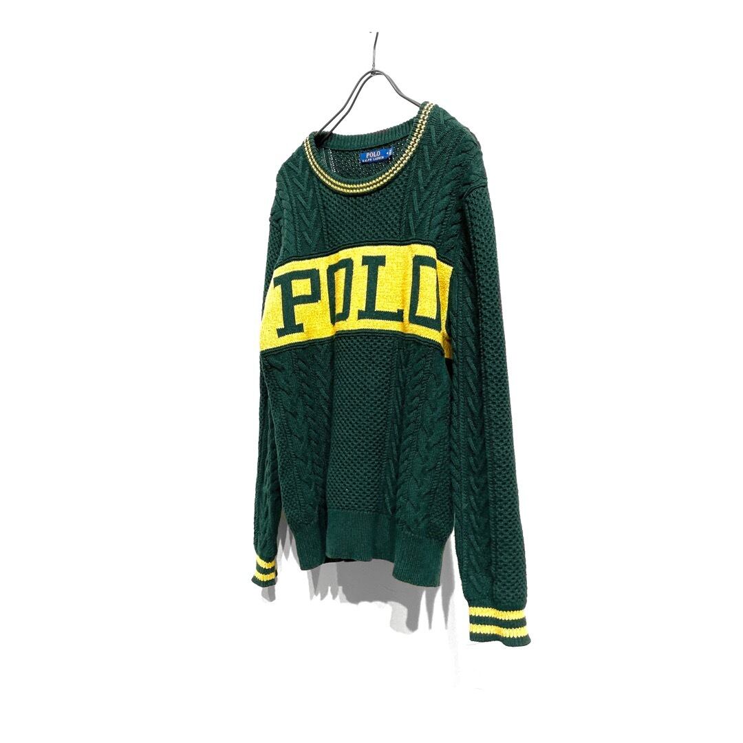 00年代のPOLO RALPH LAURENのグリーン&イエローの配色のコットン素材を使用したケーブル網のクルーネックニット。