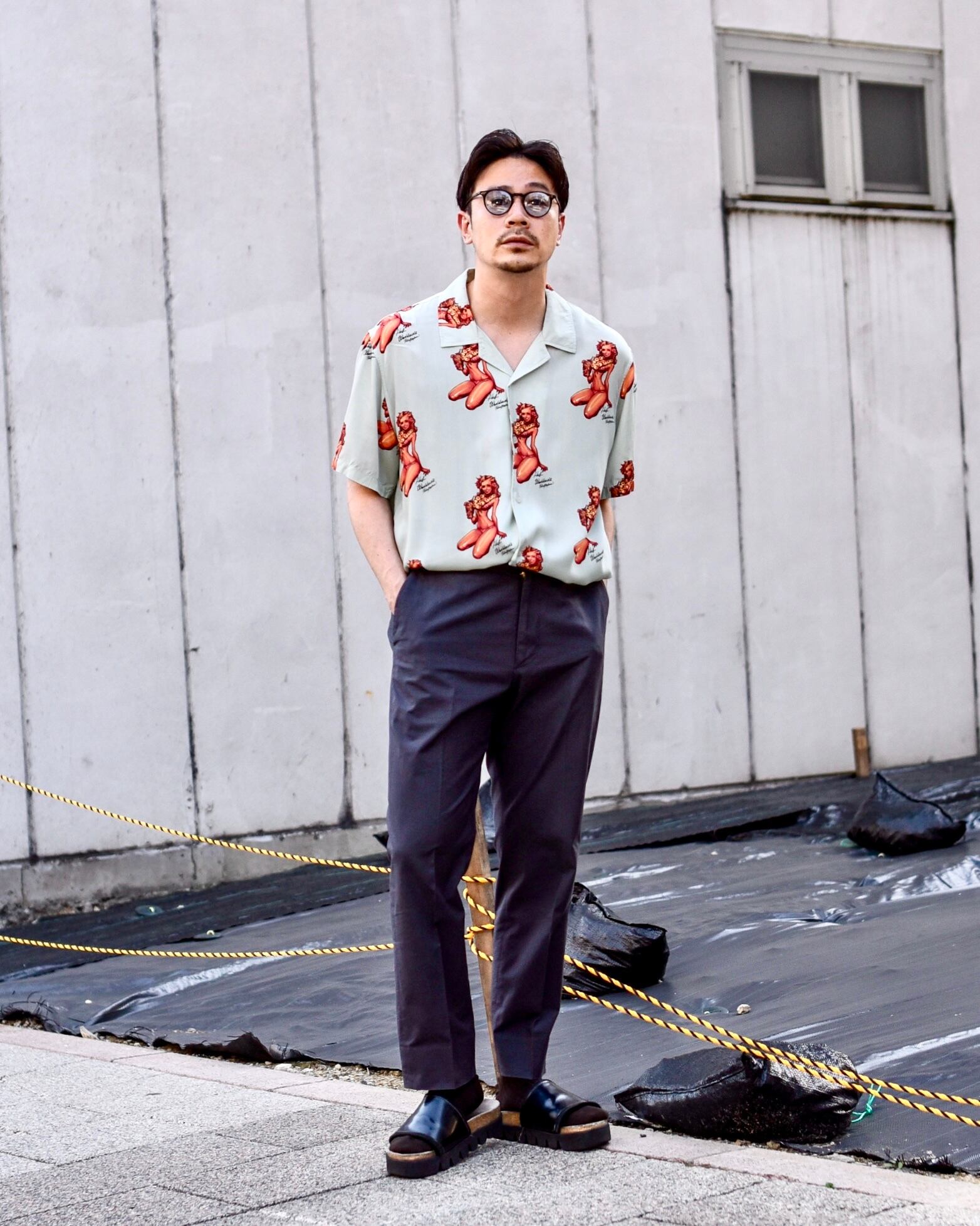 しっかりとインパクトのある柄のデザインで一枚でも主役になるデザイン。あえてインナーに使ってアクセントにするのも良いですね。