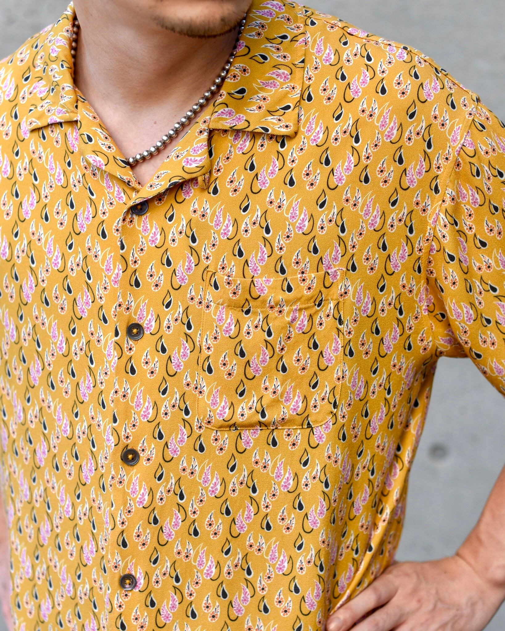 トロみのあるレーヨン素材にマスタードベースの綺麗な織りのオリエンタルな雰囲気のペイズリー柄。