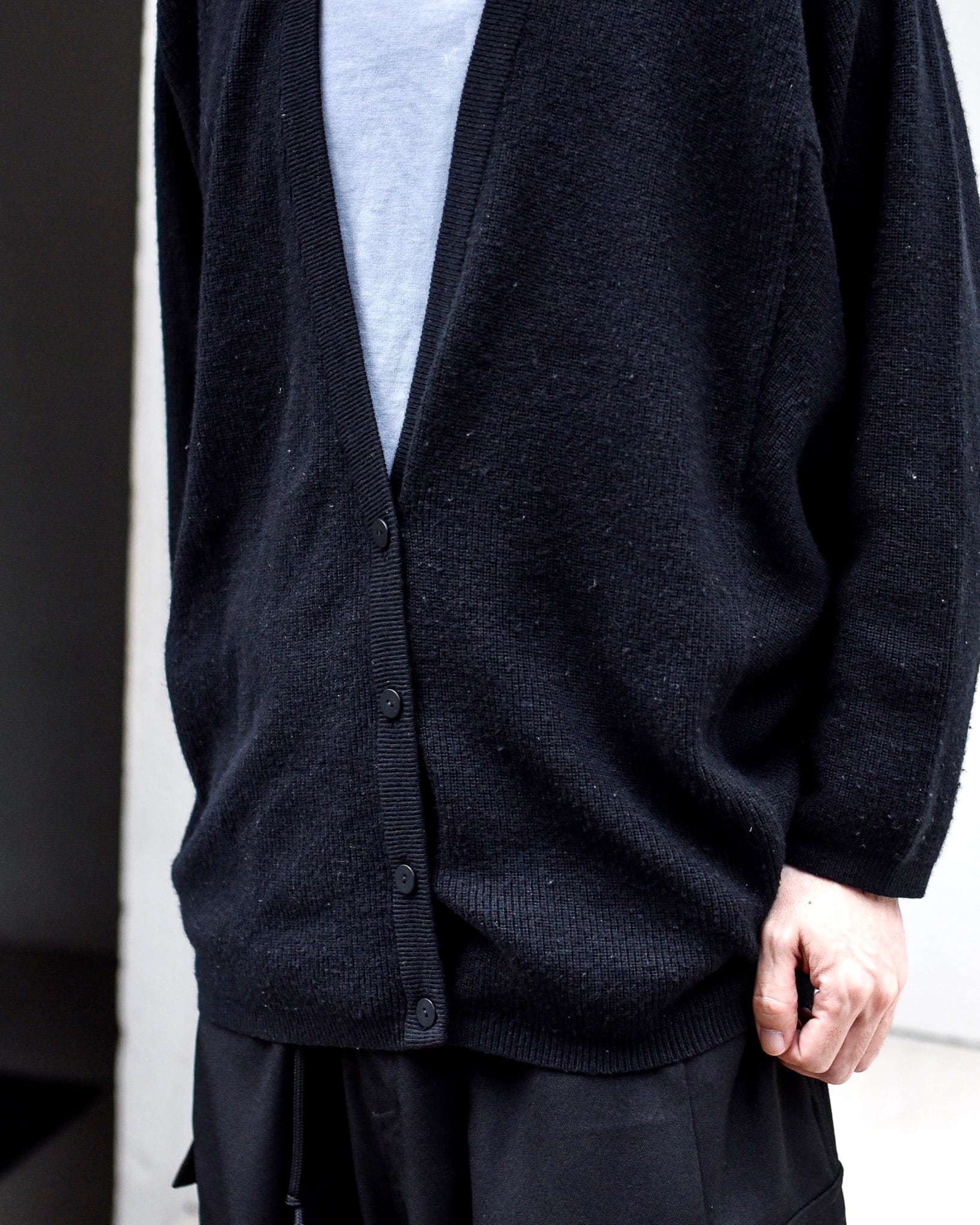 黒のカーディガンというありがちなアイテムながら、しっかりと個性のあるアイテム。