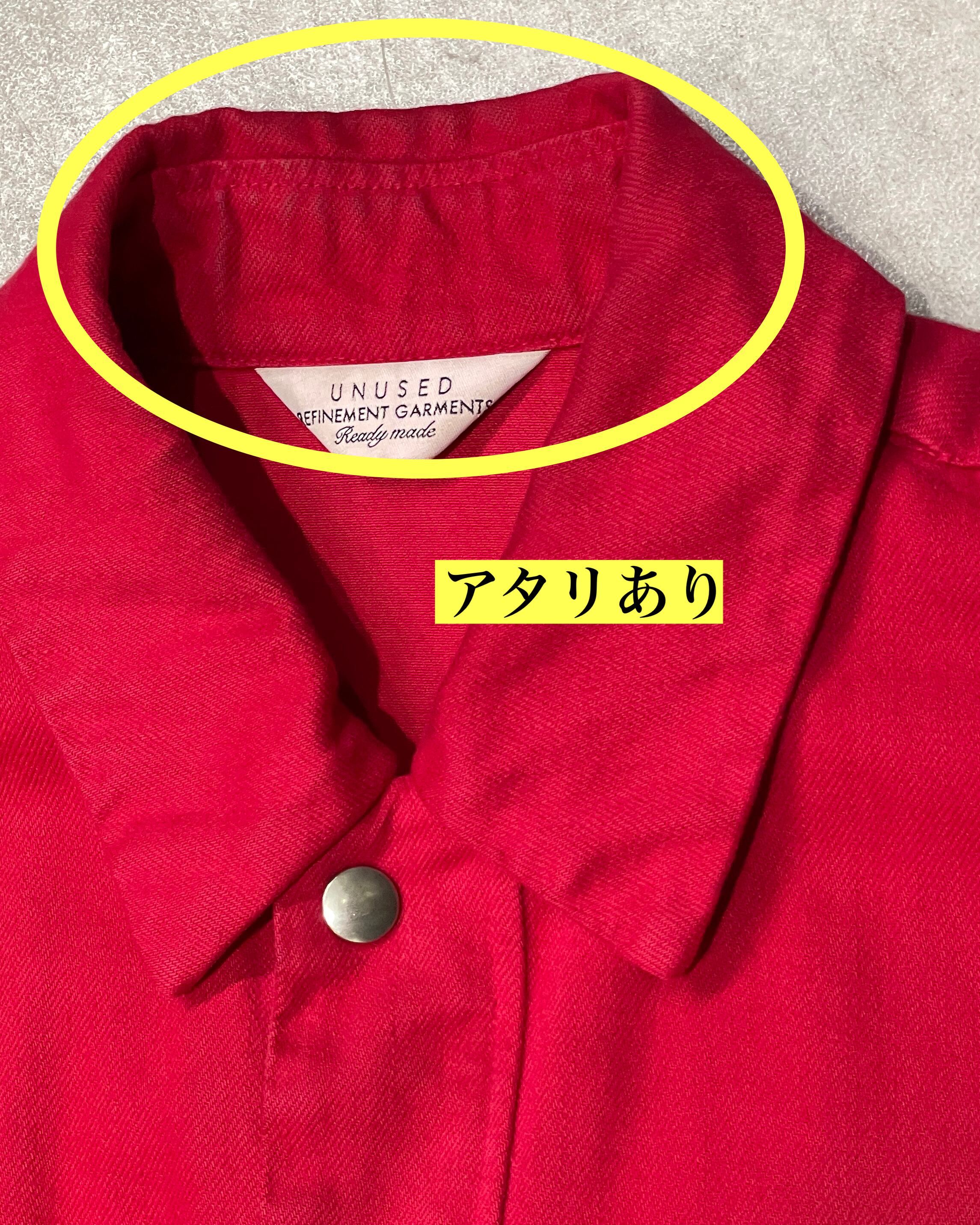 【状態】多少使用感があり、裾や首裏にはデニム特有のアタリが出ています。
