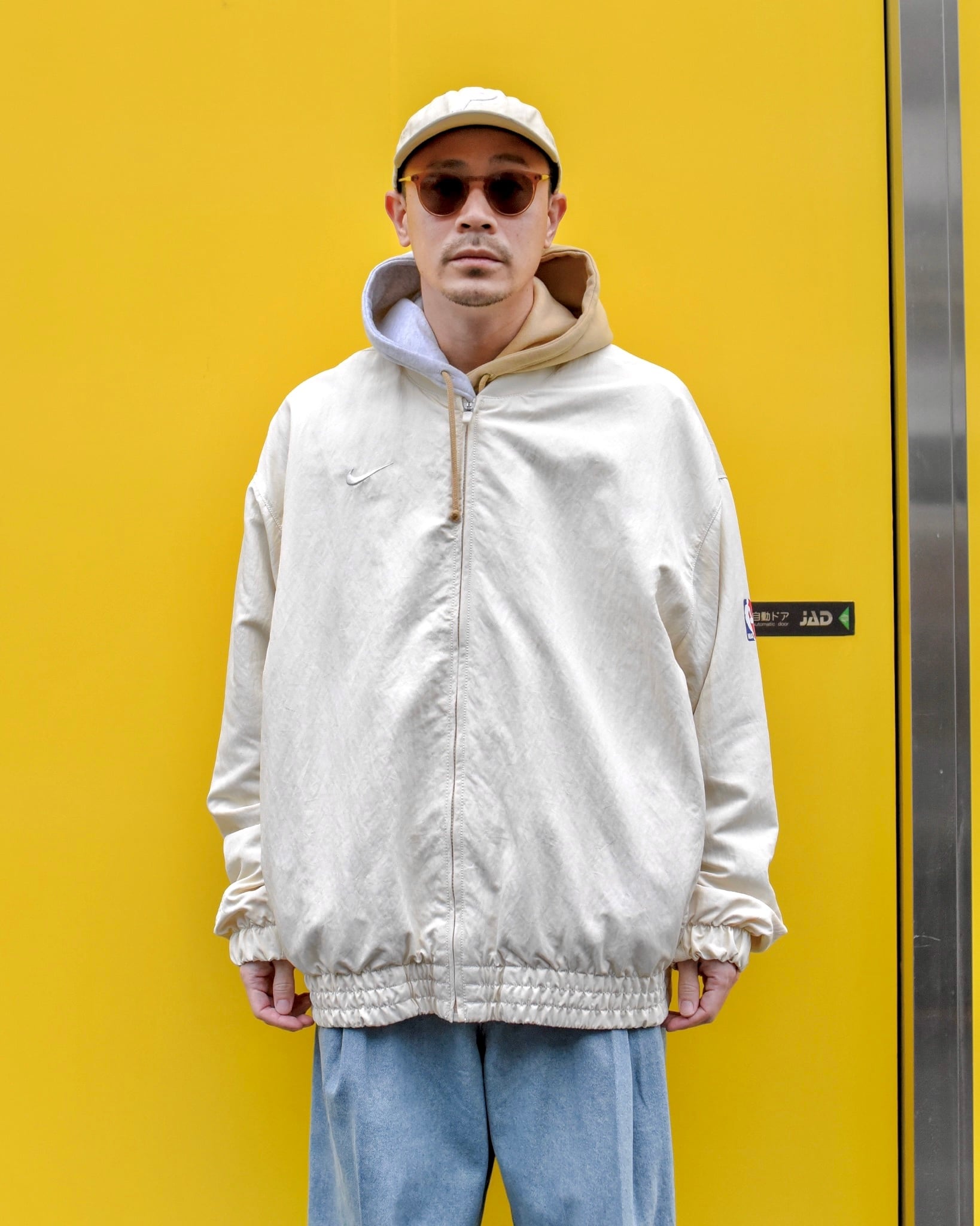 洗練された白の色味にオーバーサイズのシルエットで90年代のバスケットボール用のトレーニングジャケットにFEAR OF GODらしいハイストリートなエッセンスを加えた一着。