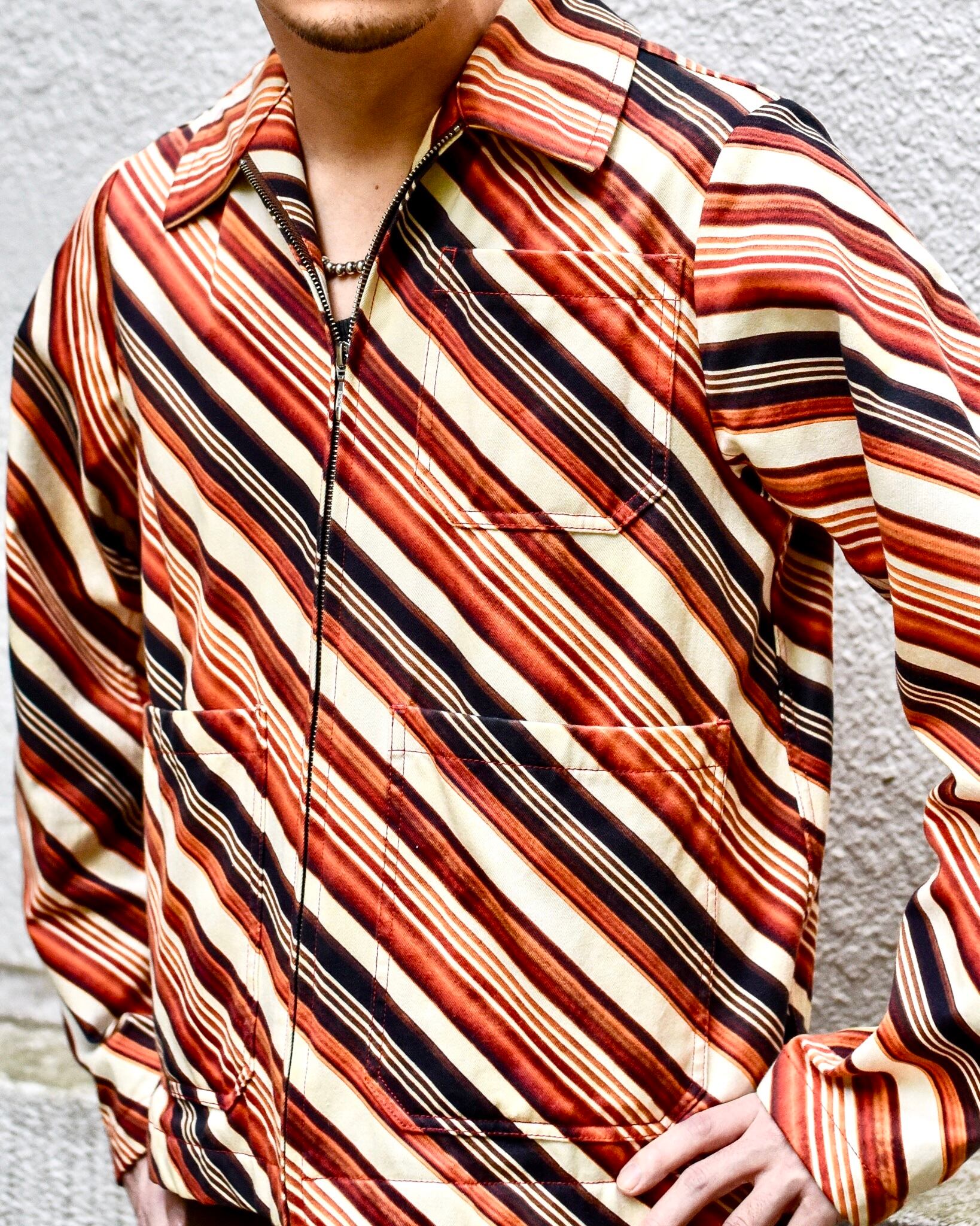 70年代っぽいカラーリングに、襟も少し大きめで丈が短めのデザインのヴィンテージのような雰囲気を楽しめるアイテムです。