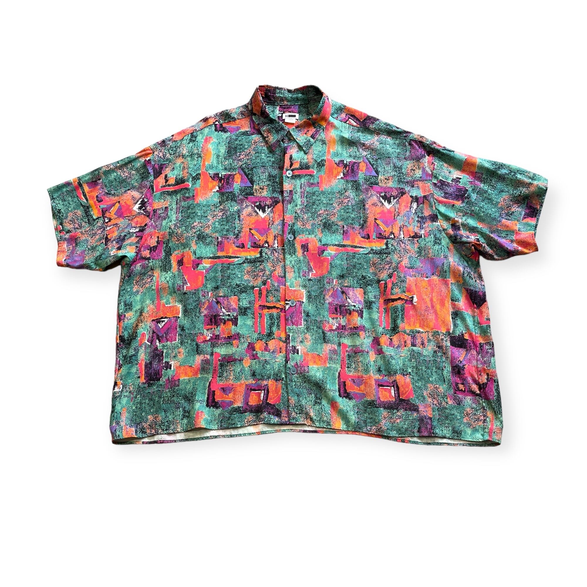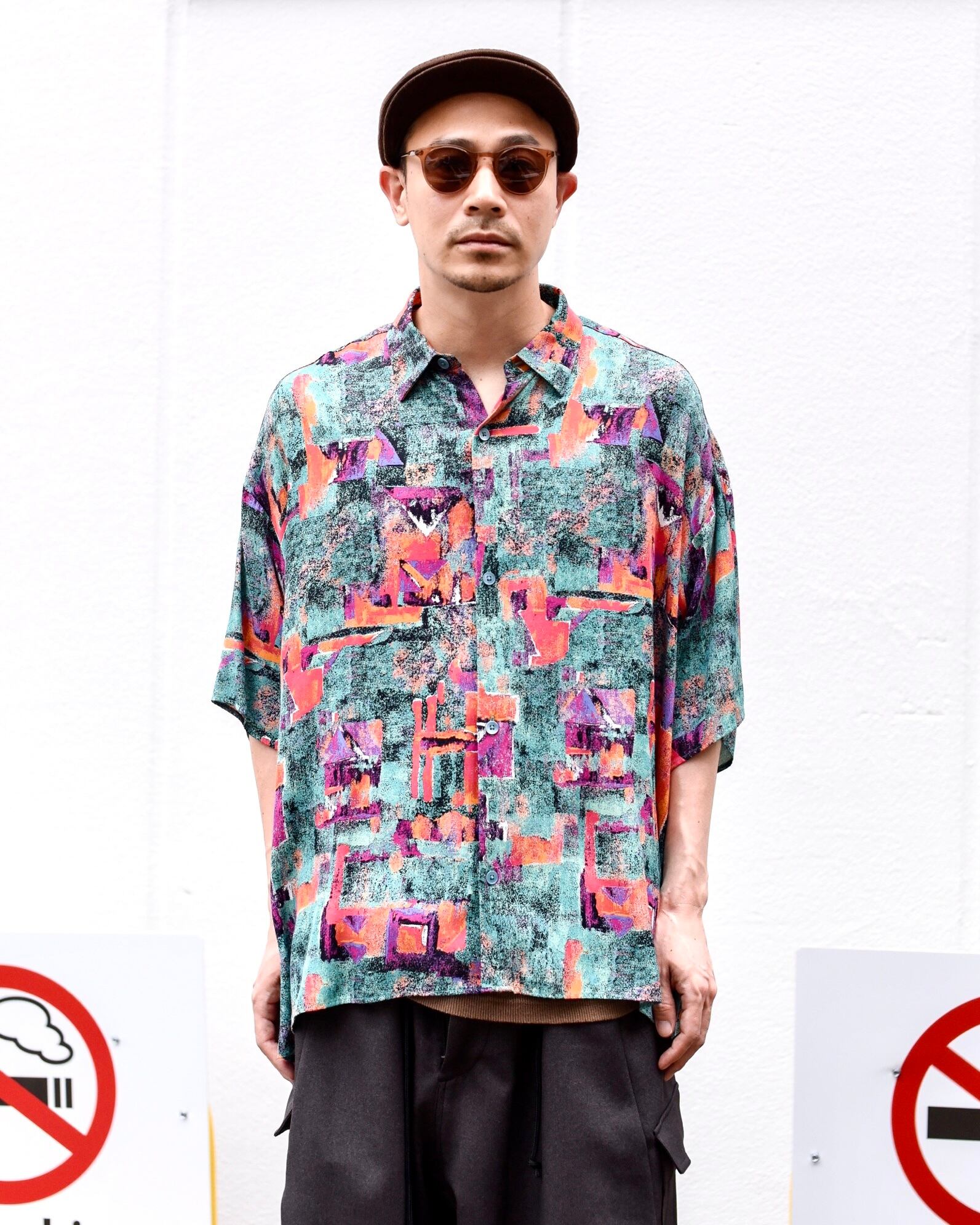 80年代のヴィンテージの柄シャツを彷彿とさせるサイケデリックなカラーリングと柄のデザインにテロっとしたレーヨン生地を使用。