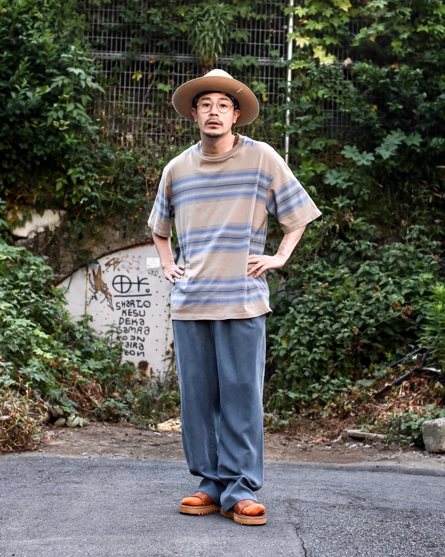 UNUSEDのオンブレボーダー柄のTシャツ。