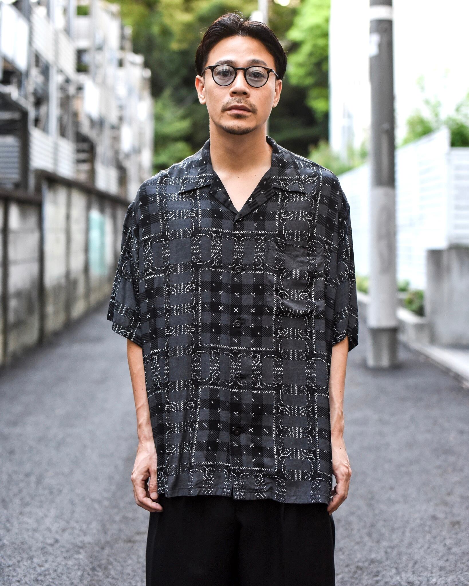 N.HOOLYWOODのペイズリーにチェックを合わせた柄のオープンカラーレーヨンシャツ。