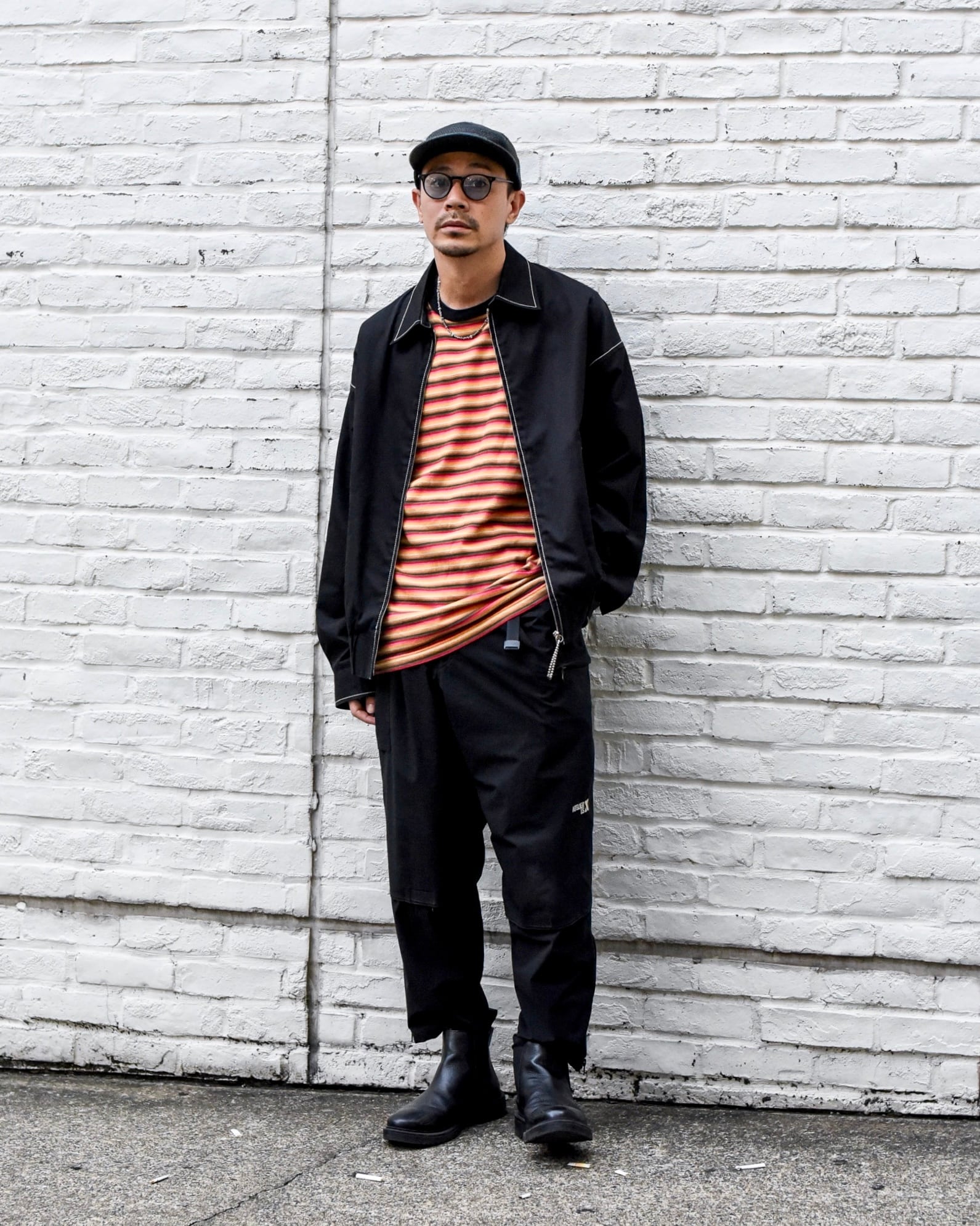 UNUSEDのステッチをアクセントにした黒のドリズラージャケット。
