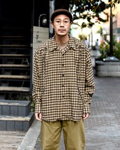 フランネルの重厚感のある素材感に身幅もかなり広めに作られたゆとりのあるサイジングで中にパーカーやニットもレイヤード出来るのでシャツジャケットの中でも寒い時期まで羽織れるアイテムです。