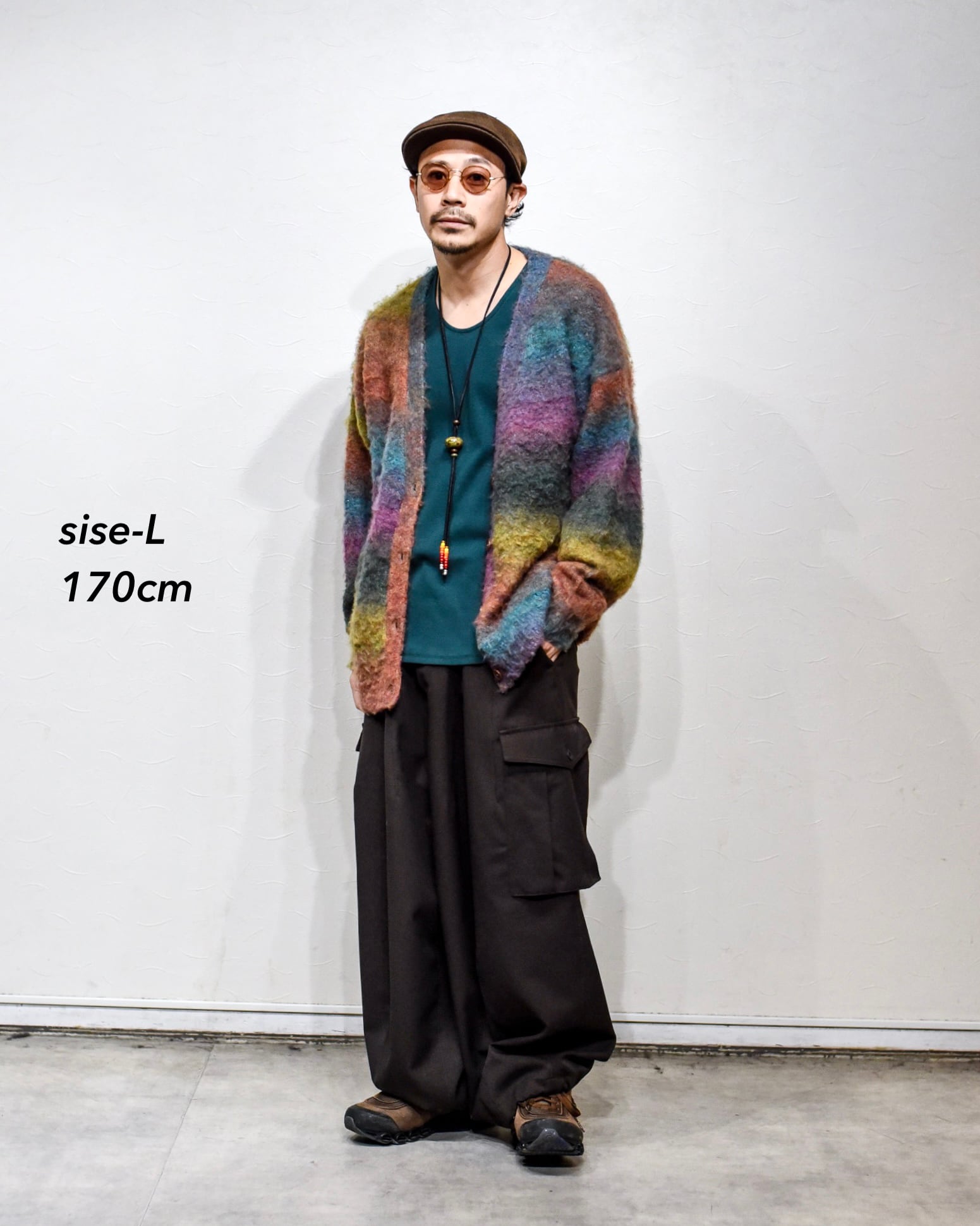 女性の方がオーバーサイズに羽織っていただくにも様になるデザインですので男女でシェアして頂けるようなカーディガンです。
