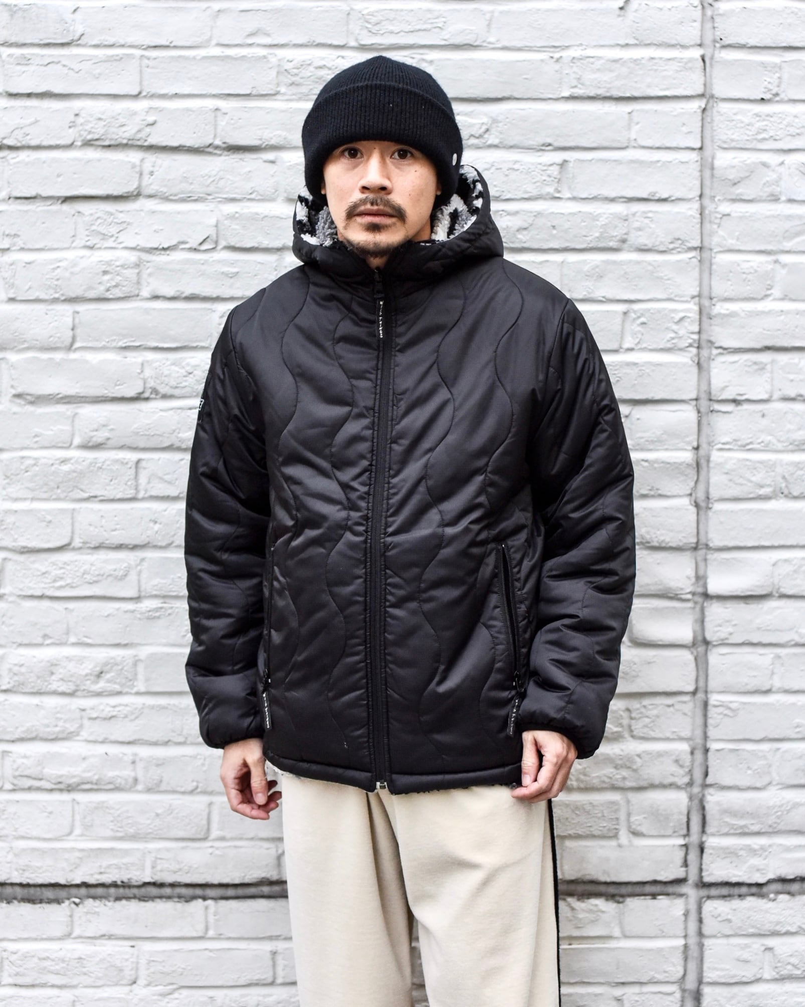 XLARGEとWILD THINGSのWネームのPRIMA LOFTを採用した中綿入りのリバーシブルパーカー。