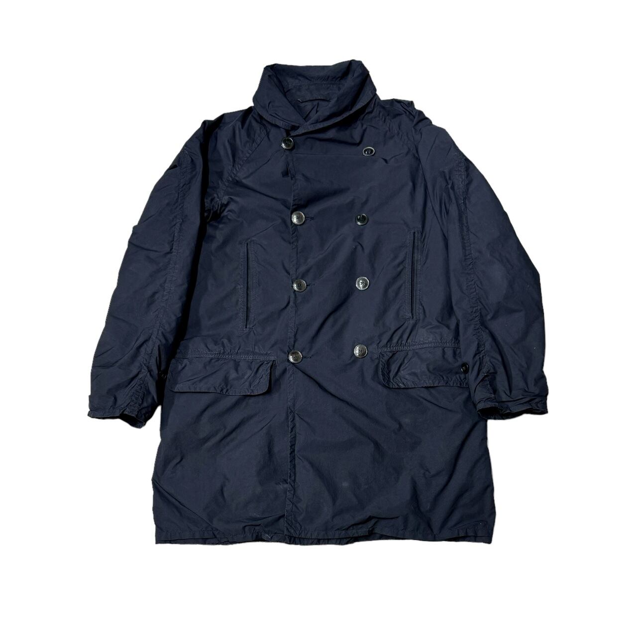 本来はミリタリーなどにも採用される無骨なマッキノーコートをベースにウールではなく、ポリ&ナイロンの軽やかな素材を使用する事でスッキリとしたスプリングコートにアレンジしたアイテム。