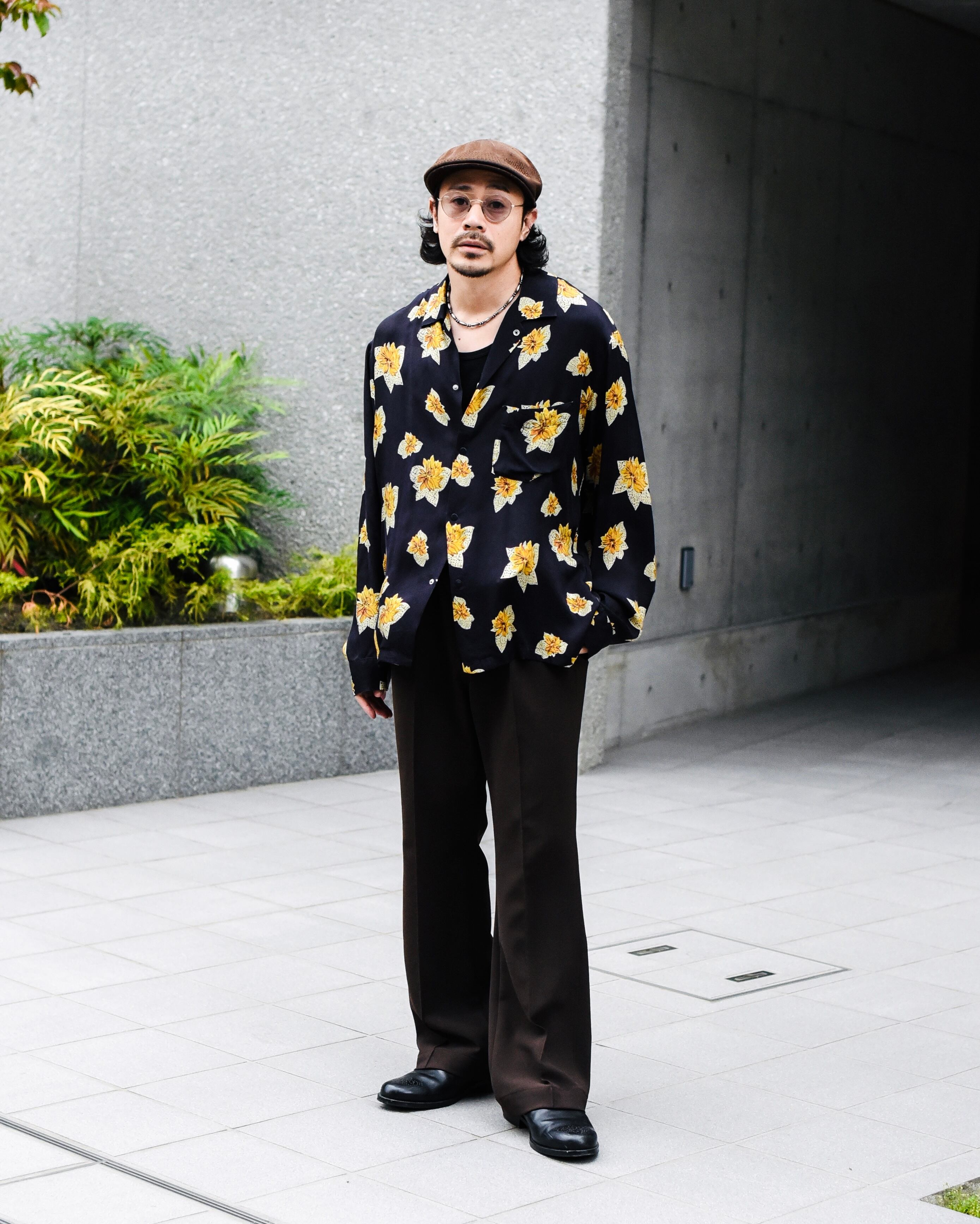 日本のファッションブランド「TOGA VIRILIS」の花柄キュプラシャツ。